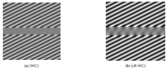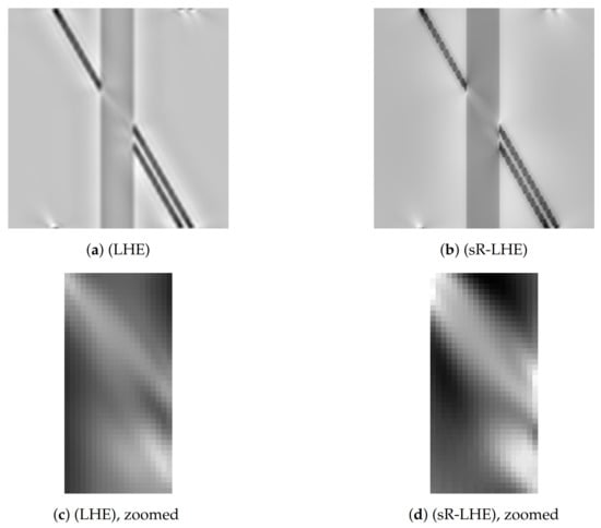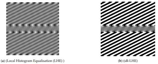 We further report in Figure 5 the result obtained by applying (sR-LHE) on the same image. We observe that in this case both the (sR-LHE) model and the LHE cortical model introduced in [,] reproduce the illusion.