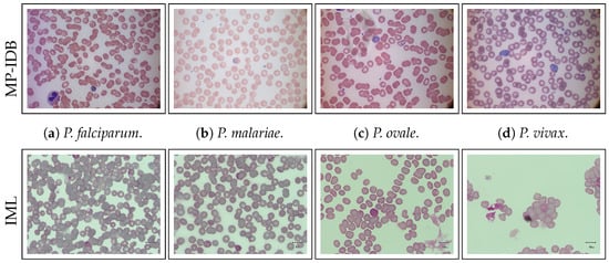 IML [40] contains images of blood samples taken with a camera mounted on an XSZ-107 series microscope at a magnification. The dataset contains 345 images with an average of 111 blood cells. Only P. vivax is represented.