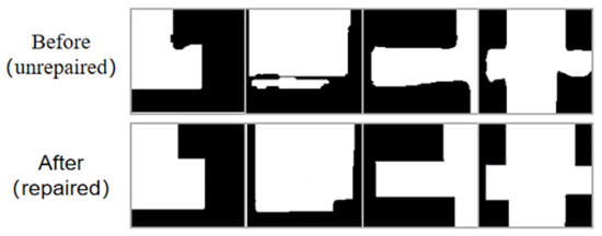 Figure 3 shows the results before and after the GAN repair process, where the repaired mask has a much smoother boundary and the room structure is kept similar to the ground truth. The proposed method can repair various mask defects without complex geometric priors, which improves the efficiency of the algorithm and reduces optimization processes.