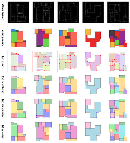 Qualitative comparisons against ASIP, Zhang et al., MonteFloor, and Floor-SP.