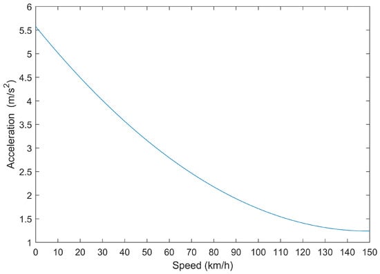 Figure 4 shows the relationship between safe acceleration and speed. The area under the curve is the acceleration values for a safe overtaking move. With the increase in the speed, the acceleration threshold reduces and tends to 1.2 m/s2. If the acceleration is too high, the vehicle would easily skid and result in a road crash.