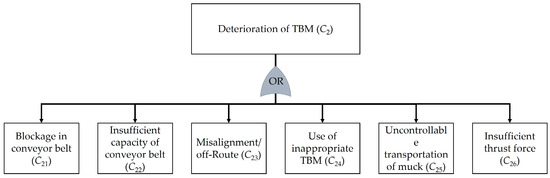 Fault tree diagram for deterioration of TBM.