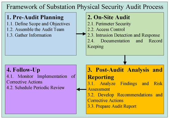 Physical security audits of electric power substations should follow a structured and comprehensive approach to effectively identify, assess, and address potential vulnerabilities. The key steps involved in this process include the following: