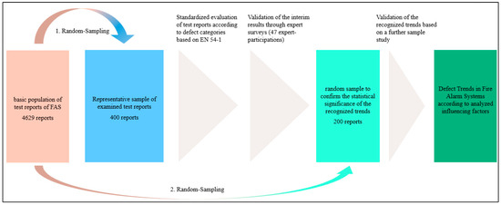 - The practical relevance of this result was also validated by the expert surveys. During the survey, 47 experts were asked whether they agreed with the following statement: “As the system size increases, the number of fire alarm systems without defects decreases, or as the system size increases, the percentage of systems with defects increases?”—The questionnaire asked for agreement from 1 (no agreement) to 5 (full agreement). The experts overwhelmingly agreed with this, with an average rating of 4.17.