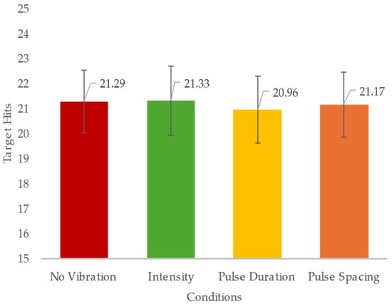 p = 0.871, indicating that target hits remained consistent irrespective of the vibration condition.