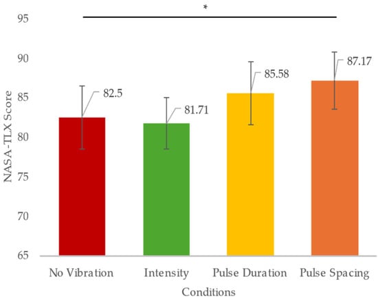 2 = 0.018. Despite this finding, post hoc analyses did not discern any particular vibration condition as being significantly different from others in terms of perceived workload among participants.