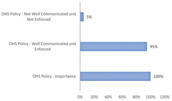 As depicted in Figure 2, with regards to the significance of establishing an OHS policy in the university setting, all respondents (100%) confirmed the significance of having an OHS policy in place, citing its role in guiding the creation of a safe working and learning environment. While 95% believed the policy was effectively communicated, 5% highlighted gaps in communication strategies, suggesting that improvement is still needed. This does not come as a surprise as universities across the globe are viewed as the body of knowledge, fostering intellectual growth, and setting standards for various fields, including health and safety practices. This discovery closely aligns with the Guidelines on Occupational Safety and Health Management Systems ILO-OSH 2001 [27], which stipulates that an employer must work together with employees and their representatives to establish a documented OSH policy [28].