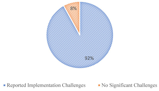 As illustrated in Figure 9, the challenges associated with implementing an OHSMS are significant, as reported by 92% of respondents who encountered various barriers, while only 8% of respondents reported encountering minimal obstacles. These include a lack of focus on occupational health, such as the need for regular medical surveillance for individuals exposed to biological agents (e.g., cleaners and plumbers), and the failure to enforce health and safety measures (e.g., gardeners neglecting to wear ear protection while operating weed blowing machines). The complexity of implementing an OHSMS in public universities stems from the diversity of environments, laboratories, workshops, lecture halls, and offices, each with unique safety requirements. Limited financial and human resources further constrain effective implementation.