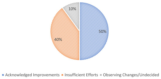 Insights into how respondents perceive improvements in health and safety performance over the past five years are fraught with dichotomic views. As illustrated in Figure 11, 50% of the respondents acknowledged progress, pointing to better incident reporting and a heightened focus on health and safety discussions. On the other hand, around 40% expressed concerns about the lack of sufficient efforts to address health and safety effectively, while 10% were still in the process of observing changes or did not have clear answers. Subhani [8] found that universities lacking formal management reviews often failed to drive continual improvement, even when audits were conducted. Similarly, Brijlall [34] emphasized that management reviews are essential for evaluating indicators, incidents, and feedback to improve OHSMS effectiveness. To ensure sustained progress, dedicated OHSMS review mechanisms are necessary for identifying performance gaps and guiding targeted improvements.