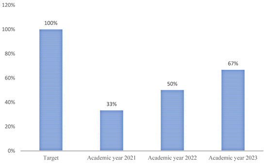 This research examines the university’s OHS department and its ongoing efforts to monitor progress toward the goal of establishing 12 OHS Committees. As shown in Figure 12, there has been a steady annual increase in the number of committees formed: 33.3% of the target was achieved in 2021, 50% in 2022 (with 6 committees), and 67% in 2023. Maseko [15] emphasizes that forming a safety committee is vital for effective safety management, especially when leaders act on the committee’s recommendations to foster a strong safety culture among staff and students.