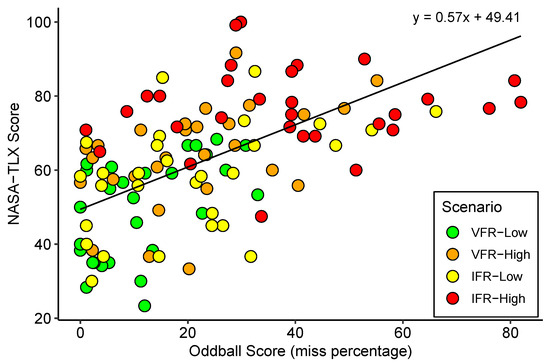 The strong relationship between subjective (NASA-TLX) and objective (auditory oddball miss percentage) workload measures highlight their validity in capturing different aspects of the workload construct. This is consistent with previous studies [43].