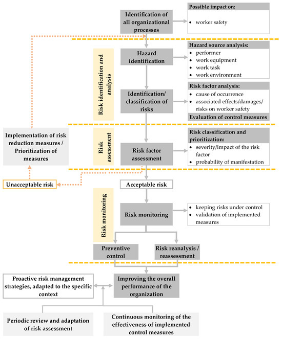 For the systematic assessment of risks, a methodological diagram of this process of the identification and assessment of occupational risks was created, as shown in Figure 1: