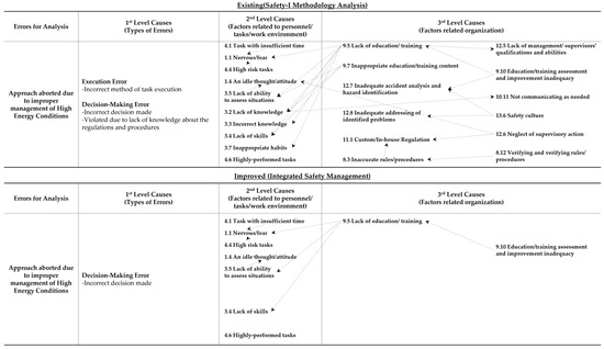 | Causes | Contribution Factors | Existing (Safety-I Methodology Analysis) | Improved (Integrated Safety Management) | ||||||