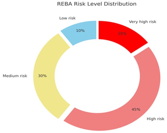 The REBA scores range from 1 to 15, with higher scores reflecting greater ergonomic risk [16]. For interpretation, we followed standard REBA action levels. Low risk (1–3): negligible or low risk; change may be needed. Medium risk (4–7): further investigation advised; changes should be considered. High risk (8–10): prompt investigation and changes required. Very high risk (≥11): immediate ergonomic intervention needed [17].