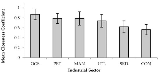 The impact of the industry sector on the quality of the safety job description is shown in Figure 2. One-way ANOVA indicated that the differences between mean closeness coefficients for some industrial sectors were significant (df = 5, F-value = 4.35, p-value = 0.001). This was particularly clear when comparing the oil and gas sector to both services/retail/education and construction sectors, and when comparing the petrochemical sector to the construction sector.
