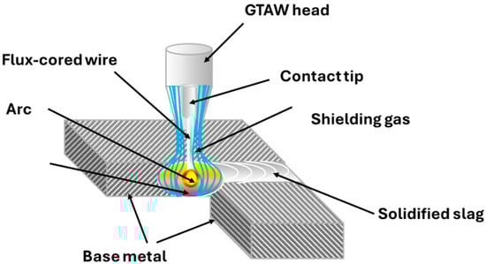 Figure 1. Flux-cored arc welding-gas shielded (FCAW-G) process (author’s own elaboration).