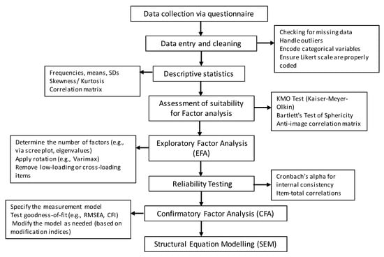 The flowchart describing the process of handling collected data for factor analysis is presented in Figure 4. The flowchart outlines the key steps from raw data to factor analysis and result interpretation.
