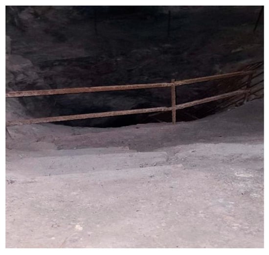 Behind the ventilation shaft, there is another horizontal shaft, to which there is access from the right side of the entrance. However, access to this horizontal shaft is not protected by a railing, and there is a risk of overcoming the ventilation shaft when overcoming this length (Figure 4).