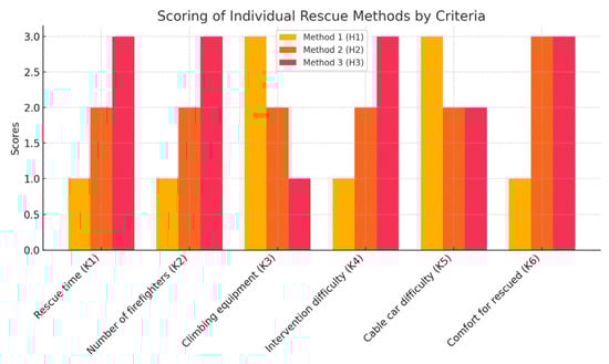 The possibilities of using the forces and resources of the fire and rescue corps and the possibility of using special technical and technological means, which the fire and rescue corps possesses, have also been analyzed. Subsequently, comparison and evaluation were used to assess the research findings, and the results were also analyzed by means of an experiment comparing them with the standard procedure with respect to the applicable legislative standards and methodological procedures. Several evaluation criteria were empirically selected for the evaluation of the individual methods based on the experience of the intervention commanders and the commanders of the climbing groups. The calculation method for determining the most effective rescue method involved a combination of point evaluation based on the measured results and weight evaluation by the evaluation criteria. In determining the weight of the individual criteria, paired evaluation using Fuller’s triangle was utilized.