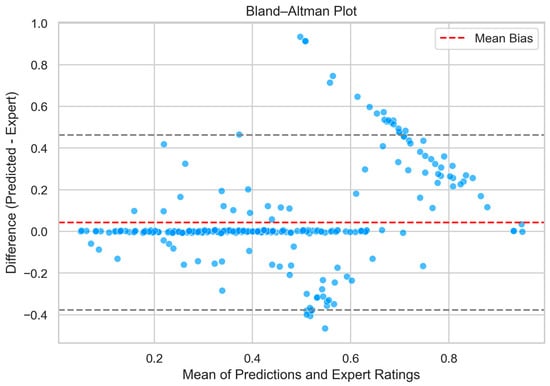 Figure 6. Bland–Altman plot comparing expert-assigned and system-predicted risk scores.