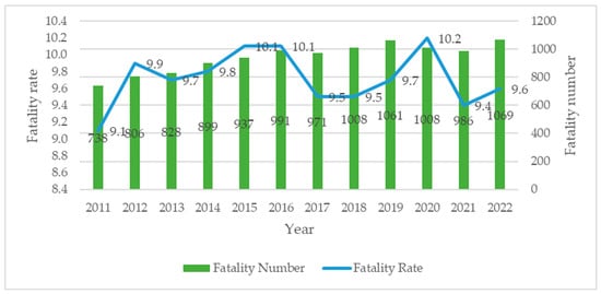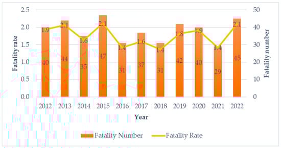 Worker fatalities: number of fatalities and fatality rate, 2011 to 2022 in USA Construction Industry [3].