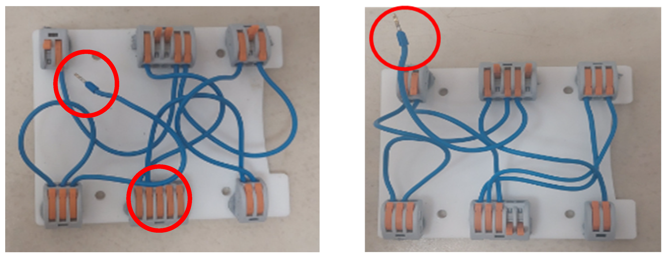 During the assembly process, participants encountered minor technical difficulties with the switches. According to the majority, the switches were difficult to operate, particularly when closing them. Participants with thicker fingers had more trouble closing the switches. One participant mentioned that he often accidentally closed two switches instead of one so he had to reopen and adjust them, which was time consuming. It was also reported that inserting wires into the designated positions was sometimes unsuccessful, and in some cases, the wires became stuck. Many participants experienced finger pain because the switches would pinch them during closure.