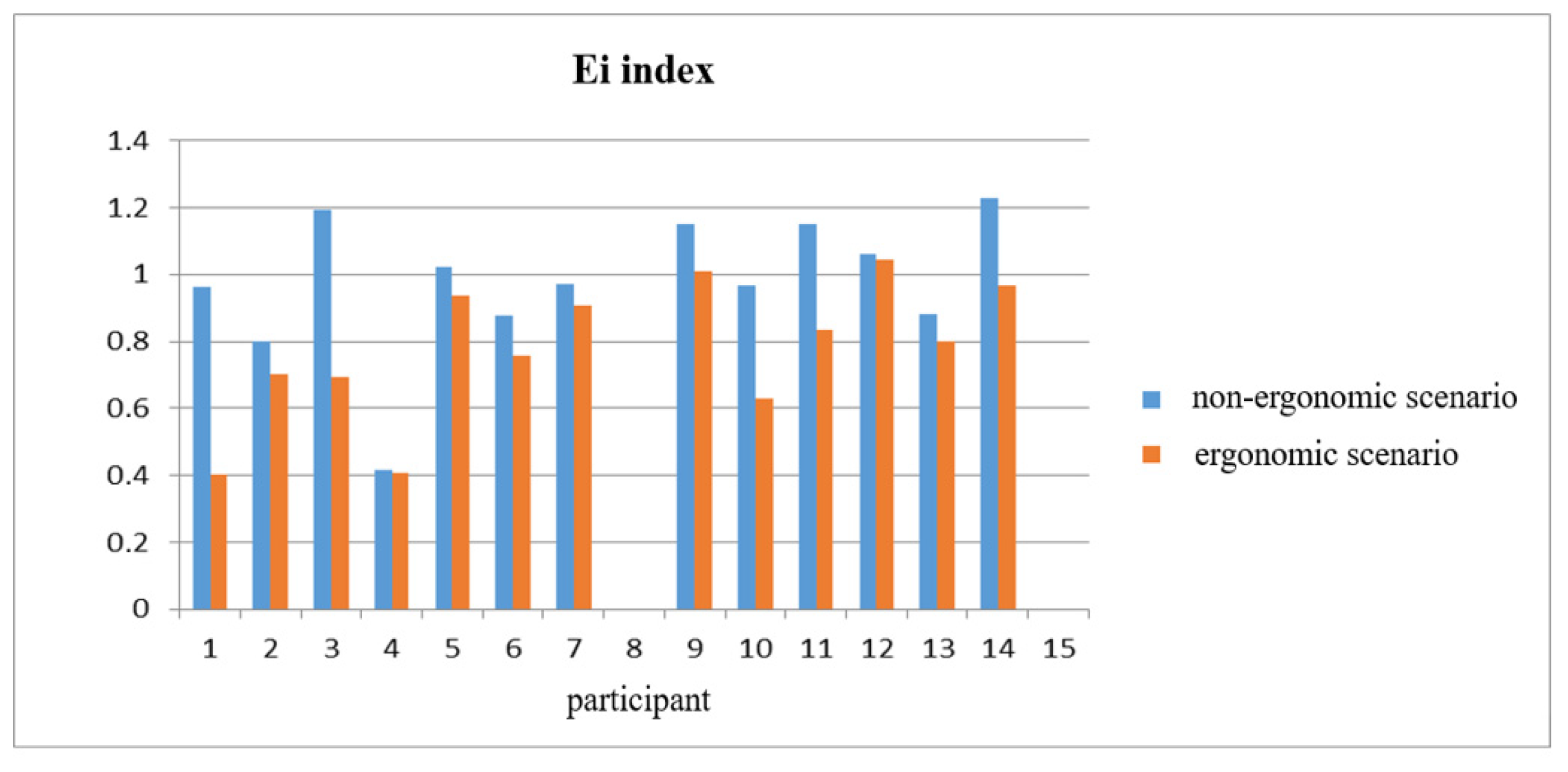 Ei in both the non-ergonomic and ergonomic scenarios.