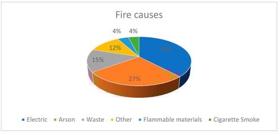 Following the analysis of individual fires and fire outbreaks, it can be concluded that electrical faults represent one of the primary causes (see Figure 2) [3,8].
