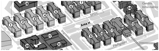 Hospital Policlinico San Martino consists of 42 pavilions (see Figure 3). The pavilions selected for this study were chosen based on the following criteria: