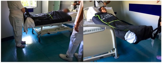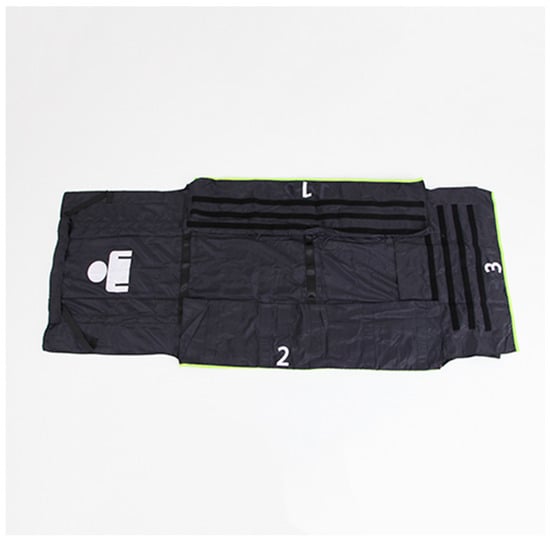 The evacuation sheet (see Figure 5) is a device made of 100% polyester, coated with an antibacterial film, washable and sanitizable, and classified as M1 (fire-retardant) with a maximum load capacity of 150 kg [9].