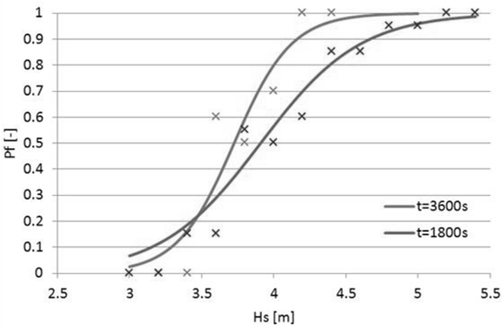 It is worth noting that the concept of the critical sea state, HScrit, as used for the s-factor in force, is associated with the sea state at which the probability of capsize (pf) is equal to 0.5, based on half hour tests.
