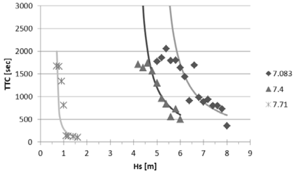 Figure 8 corresponds to the average TTC of at least 10 realisations of each sea-state).