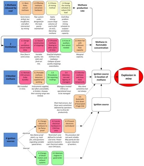The physical accident sequence is distilled from the source documents. Next we extracted the failings of a systems nature. These are identified as the power electronics, and the ventilation system. The next level of analysis extracted the organisational factors. A semi-qualitative research method is used here, whereby recurring themes are extracted from the accident report. This is achieved by inspection of the occurrence of similar words or concepts, or similar types of failures. We did not impose any specific categorisation on this, neither the human error causal factors of slips–lapses–mistakes–violations [], nor any other. Instead we sought answers to the question: How did people working at the mine make sense of their own behaviours and those of others? We were interested in sense-making at worker, manager, engineer, and executive levels. Culture emerges as the key factor here, and is different for workers and managers. We show that the overall causal sequence for the accident is not a linear progression, but rather a complex interplay of the engineering challenges, project deliverables, management priorities, organisational culture, and worker behaviour.