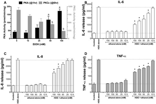 2.1. Alcohol Dose-Dependently Alters HDE-Stimulated PKC Activity and Cytokine Release