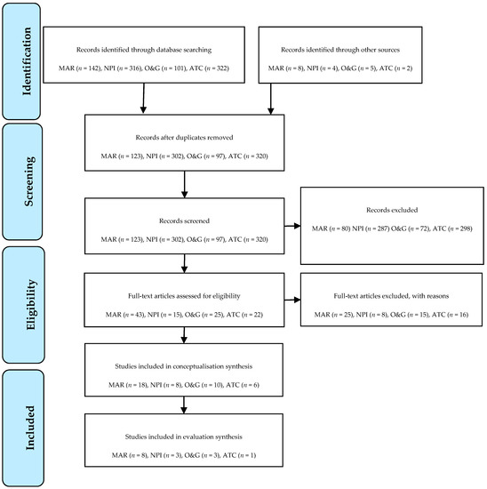 | Procedure relation | MAR (18) | NPI (8) | O&G (10) | ATC (6) | All (42) |