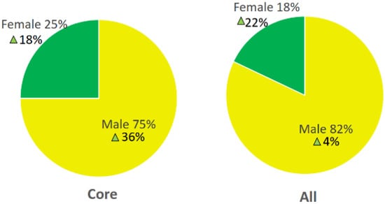 The core team has seen an 18% increase in females, with a 22% increase in females overall among team members. Gender percentages for the team can be seen in Figure 2.