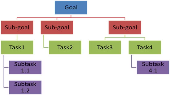 In order to identify the various tasks performed by workers for a particular project or job, a Hierarchical task analysis (HTA) can be utilized. An HTA is one of the most widely used forms of task analysis, breaking down a goal of the job into a hierarchy of sub-goals that are completed by performing a series of tasks and subtasks []. In order to complete an HTA the following steps are performed []: