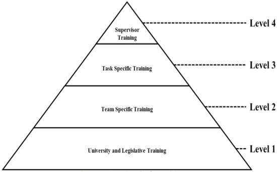 In order to establish the safety training program, though, a formal analysis of the workplace hazards that team members will encounter must be completed to determine what experience level must be obtained before a member can perform a particular job. Systems safety management techniques are utilized to perform this analysis []. These techniques are typically used by a design team in accordance with active safety objectives, determining what hazards a consumer will face and how to mitigate them but these techniques can be extended for use within the workplace []. The management techniques are used to identify workplace hazards, overall classifications of respective risks and subsequently determine mitigation strategies to limit the risks of the hazards [].