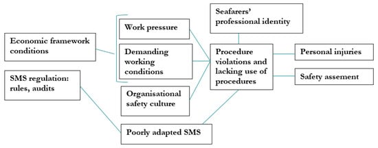 Competition and efficiency demands. Størkersen et al. [] find that efficiency demands are the most important reason procedures are violated to get the job done. Maritime accident investigations and studies show that leading bridge officers and other crew members must constantly balance considerations related to economy and safety, and shipping companies’ transport buyers to a considerable degree define the conditions for safety [] (see also [,]).