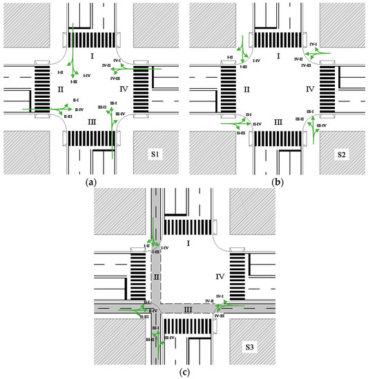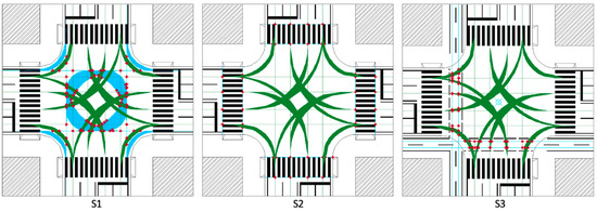 - Scheme 3 (S3) is a four-arm intersection with a bike path (Figure 5c).