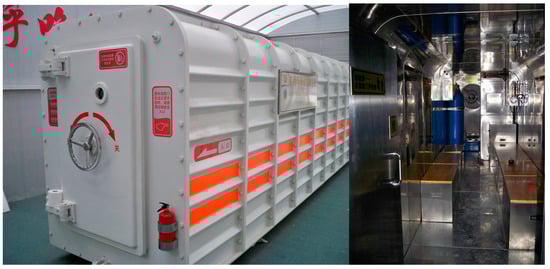 A coal mine emergency refuge system is a type of hermetic space that provides an airtight safe rescue station in which trapped miners may go into in case of a coal mine emergency for protection against explosion, fire, floods and other disasters. The outside of the hermetic space is made of stainless-steel corrugated board, which can withstand high temperature flue gas, explosion shock and other disasters. The inside of the space has an environmental control and life support system (ECLSS). The ECLSS includes five systems for oxygen supply, air purification, temperature and humidity regulation, environmental monitoring and power supply. It can provide oxygen, food, water, adjust the ambient temperature, remove toxic and harmful gases, and create basic conditions for survival, which can improve the chances of survivors receiving emergency rescue [,,,,] (Figure 1).The relevant standards for the coal mine emergency refuge system require that the survivors have a life expectancy of more than 96 h [] without power or fresh air after the disaster and that they have a reserve factor of no less than 1.1 (i.e., survivors have no less than 106 h of an appropriate living environment). It is especially important to define the temperature and humidity boundary parameters of the internal living environment for long-term survival in the emergency rescue space. If the space forms a high heat and humidity environment, it will cause serious physical and psychological impacts on the survivors, such as physical weakness, confusion and other symptoms. It may even lead to fainting and death.
