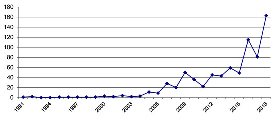 Though the beginning of the debates on coopetition was in 90-ties, the main rapid growth is observed lately, and that is why, considering the increasing publishing trends (see Figure 2) and dominating subject areas, the initial data search was refined to the papers on coopetition in a period of 2008–2018, and limited to the papers, conference materials, and books, excluding editors’ notes, etc. The total number of papers was 664. These search results were stored in RIS format that includes all information needed for further bibliometric analysis (including title, authors names, their affiliations, abstracts, keywords, references and so on). The preliminary results revealed few papers in security and a lack of papers on safety that are related to coopetition in the Scopus Database, and therefore the sample was modified to include the papers from other databases through the Publish & Perish tool. The scheme of the research and review process is shown in Figure 2.