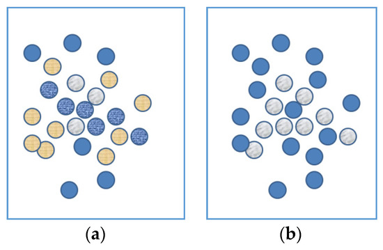 For explanation purposes, the terms ‘system 1′ and ‘system 2′ were used. It is important to note, that in this article, they are not considered as separate independently operating systems. The automatic spreading of activation as part of system 1 is a core functioning of the brain and shall always occur. It might not always be sufficient to lead to a direct answer, but the mechanism is present. Preventing cognitive biases is therefore not a matter of trying to switch off system 1 thinking, but of adding system 2 thinking, which means activating other relevant knowledge apart from the automatically activated concepts. It is not possible to suppress the automatically generated activation. The two images below are meant to illustrate this. Both images (see Figure 1) contain the capital letter A. When seeing only Figure 1a, it tends to be hard to see this letter. More noticeable are other patterns like the clustering of yellow on the bottom left and the wrinkly line through the middle. In Figure 1b, containing the exact same ordering of the circles, it is very easy to see the letter A. When people know the ‘correct answer’ after viewing Figure 1b, they are able to see the letter A in 1a, but still find it quite hard to suppress the other patterns. These other patterns tend to ‘compete’ while one tries to see the letter A. It is very hard to ignore the irrelevant information, even when you know it is irrelevant.