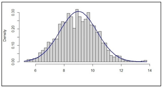 In this example we are looking at a variable which we expect, based on theory, to follow a normal distribution. We check the actual distribution of the real data as a means to check the quality of the data. The image below, Figure 2, is the result. What conclusion do we draw with respect to the quality of the data?