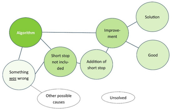 Another example of this pitfall occurred during the analysis of an error with the previous version of the indicator. This previous version looked at the remaining time available in seconds, before an emergency brake needed to be applied, instead of the required deceleration. In the dataset, we discovered trains with a negative time, indicating that they would pass a red signal, followed by a positive time, which should not have been possible. This suggested a problem in the calculation of the minimal braking distance. The minimal braking distance was calculated taking the parameters into account related to the safety brake/quick-acting brake (see Figure 9).