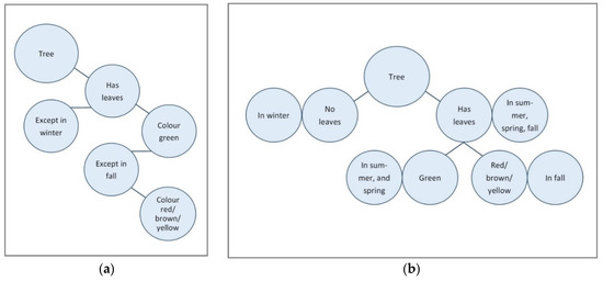 (a) Hypothetical knowledge structure A; (b) hypothetical knowledge structure B.