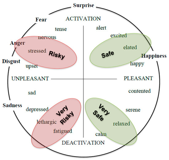 - Russell, J.A. A circumplex model of affect. J. Pers. Soc. Psychol. 1980, 39, 1161–1178. [Google Scholar] [CrossRef]