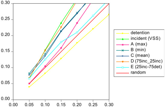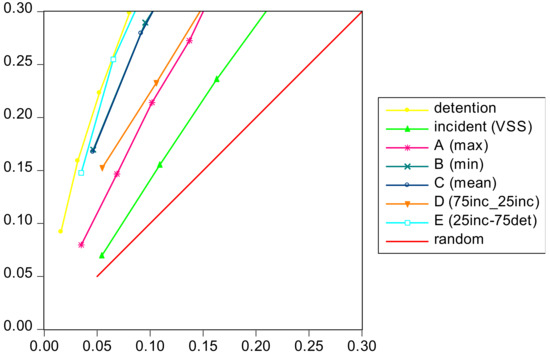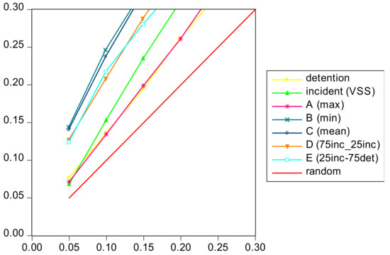 One can observe that all methods perform better than random selection except for the detention method (using detention only) for the evaluation variable incidents (VSS). This is understandable given the small correlation (–0.046) between the two which also confirms that vessels with a high probability of detention do not necessarily have a high probability of incident (VSS) and that the two need to be treated as different risk dimensions.