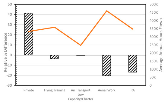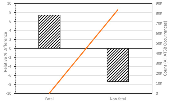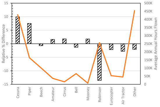 Previous work also showed that pilots with less than 250 h accounted for 23.4% of occurrences. Based on this, it was hypothesized that student pilots and training operations would specifically be more likely to result in inadvertent flight into IMCs. All commercial operations actually had negative delta values, indicating that relative to the number of hours flown, the number of occurrences were less than expected. Only private operations showed an observed value greater than expected, indicating that VFR2IMC is a greater concern for private operations and is associated with poor planning and preflight preparation.