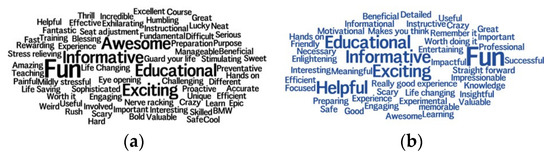 Word cloud of the top five things from the program: survey (a) and interview (b).